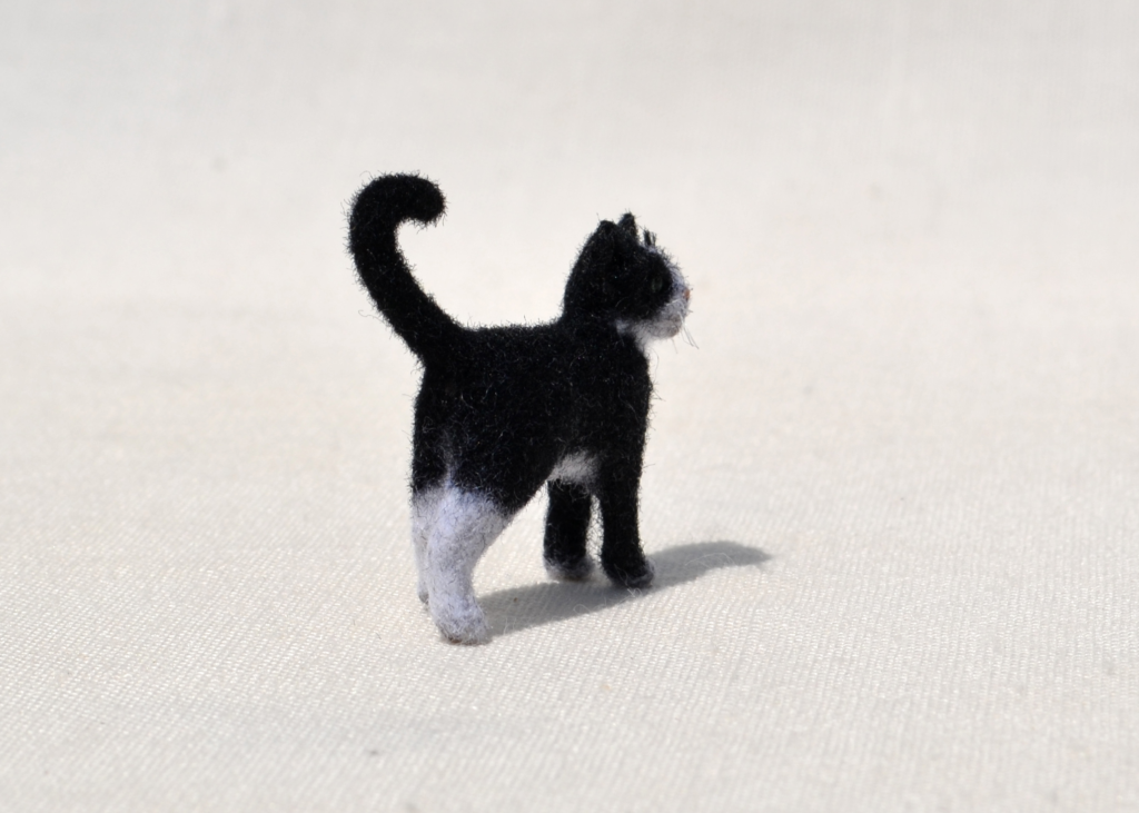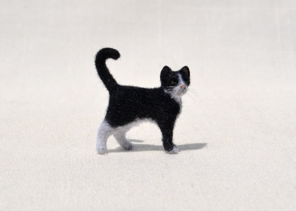 1:12 Scale Tuxedo Cat – Flocking over Polymer Clay Body
