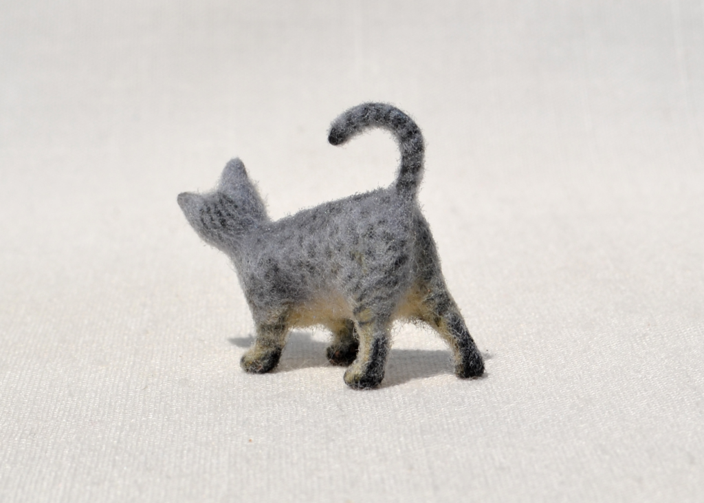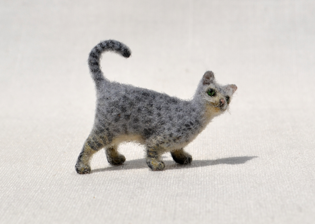 1:12 Scale Domestic Shorthair Tabby Cat – Flocking over Polymer Clay Body